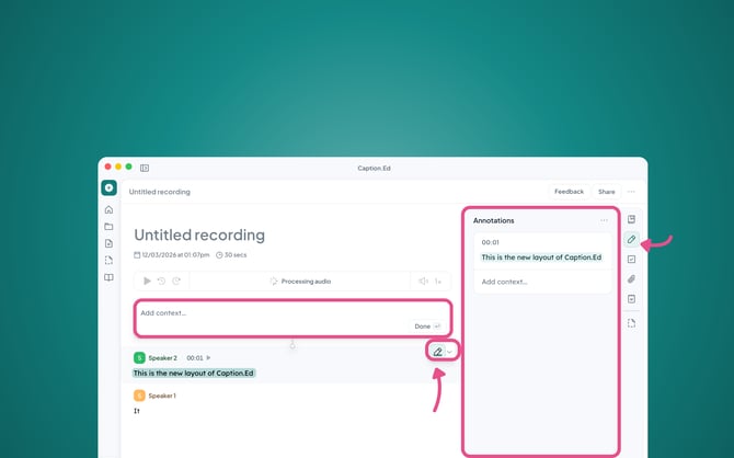 Previously, editing speaker names was only available in playback mode. Now, you can edit speaker names live, making it easier to keep track of who is speaking during a session. This is also the same for your transcription. Notice a word that you want to change? You can now do this instantly!