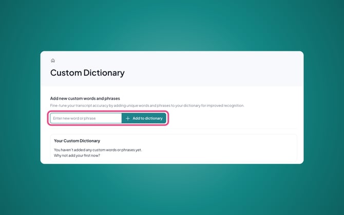 In the box provided, you can type individual words or phrases into it and press "Enter" or click the "Add to dictionary" button on the right-hand side, then these will be added to your Caption.Ed library!