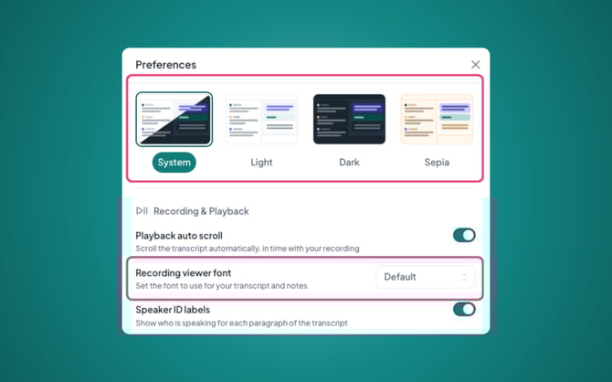 Scrolling down you’ll find the setting “Recording viewer font”, where you’ll find a drop-down of our available fonts, you can go ahead and select your preferred option.