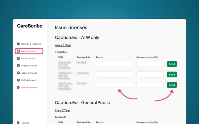 To issue a license, you will need to go into your “Issue Licenses” tab in the left-hand menu.
