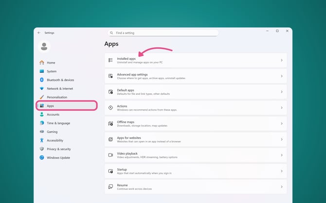 Then, go to “Installed apps” or this may appear as “Apps & features”