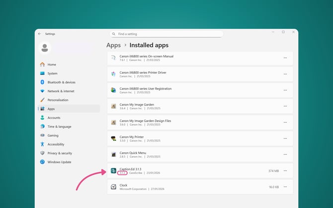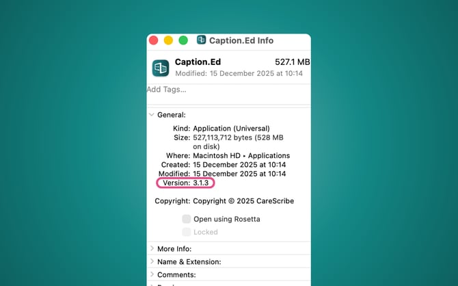 This will open up a pop-up, under “General” you’ll find the version of Caption.Ed you have installed.