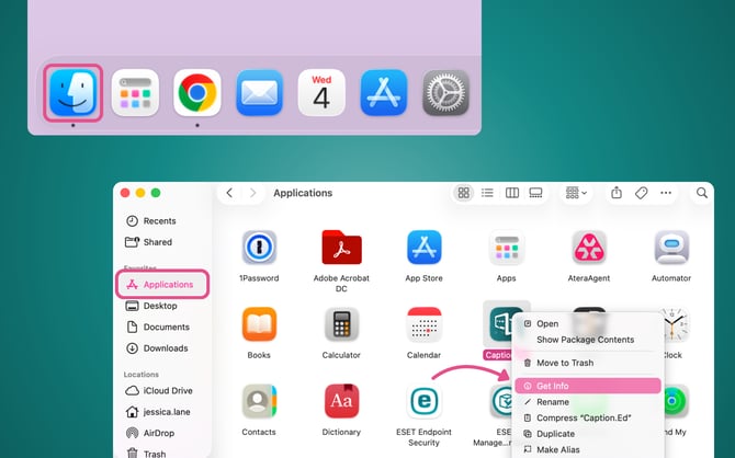 Locate Caption.Ed and then right-click on the app icon, then click through to “Get Info”.