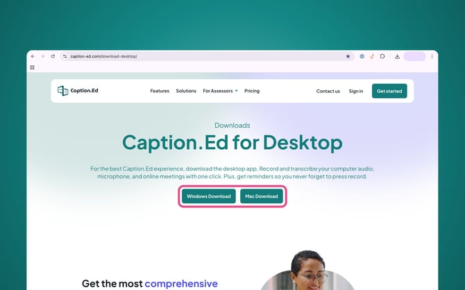 Once you know your computer meets our minimum requirements, you can visit the Caption.Ed website and choose either the Windows or Mac download file.